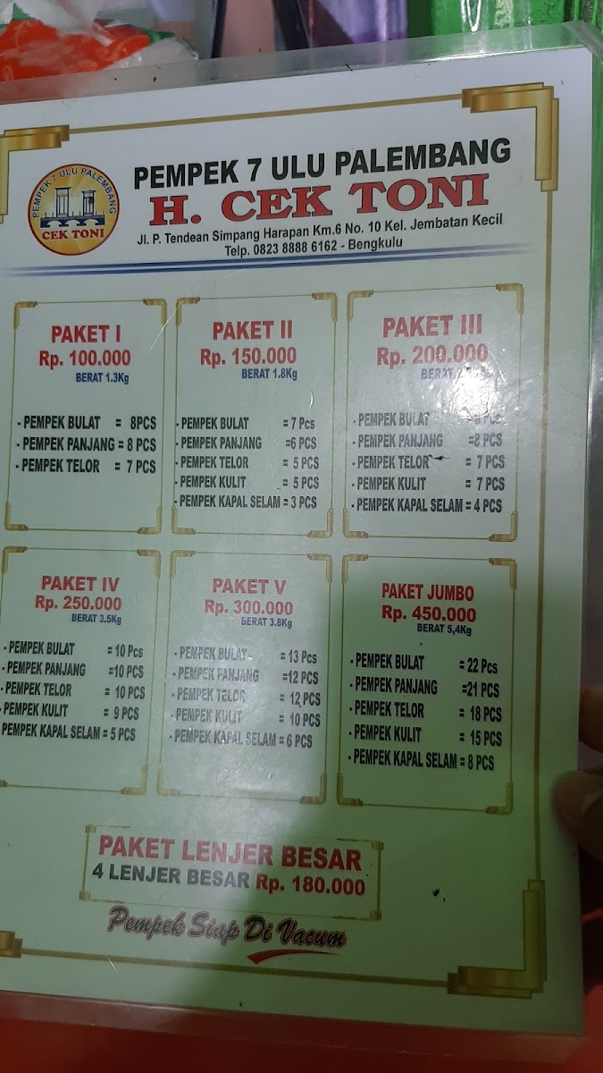 Welcome to Pempek Cek Toni, a delightful gem situated in the heart of Bengkulu. This authentic pempek restaurant specializes in traditional Palembang-style dishes that are sure to tantalize your taste buds. With a menu that features a variety of options, including the must-try PAKET PEMPEK VAKUM, diners can indulge in a selection of delicious pempek, a beloved Indonesian fish cake.